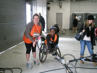 I was glad when the race finally began, though I wasn't treating it as a race because I didn't feel fit enough, and I'm a sprinter. The main reason I was there was to try and raise some money for a very worthwhile cause, AbleCild Africa, a charity which supports disabled children in Africa. It's a cause very close to my heart, and as I pushed I kept thinking that no matter what I was suffering, it was nothing in comparison to the struggle those children have. I had to stop once or twice to sort out cramps in my legs but still managed to complete the race in one hour twenty five minutes, a respectable time but also one I know I can improve upon once I get back into full time training. Dean did a great time of one hour,thirty nine minutes, and he was very encouraged by the result.